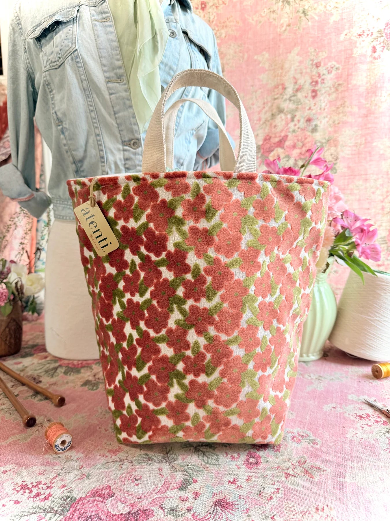 Soft, cheerful, and irresistibly giftable — the Atenti Velvet Daisy Hope Basket brings floral joy to every maker’s table. Handmade in the USA from a luxurious vintage-inspired velvet with coral-pink daisies and olive green foliage, this structured tote is the...