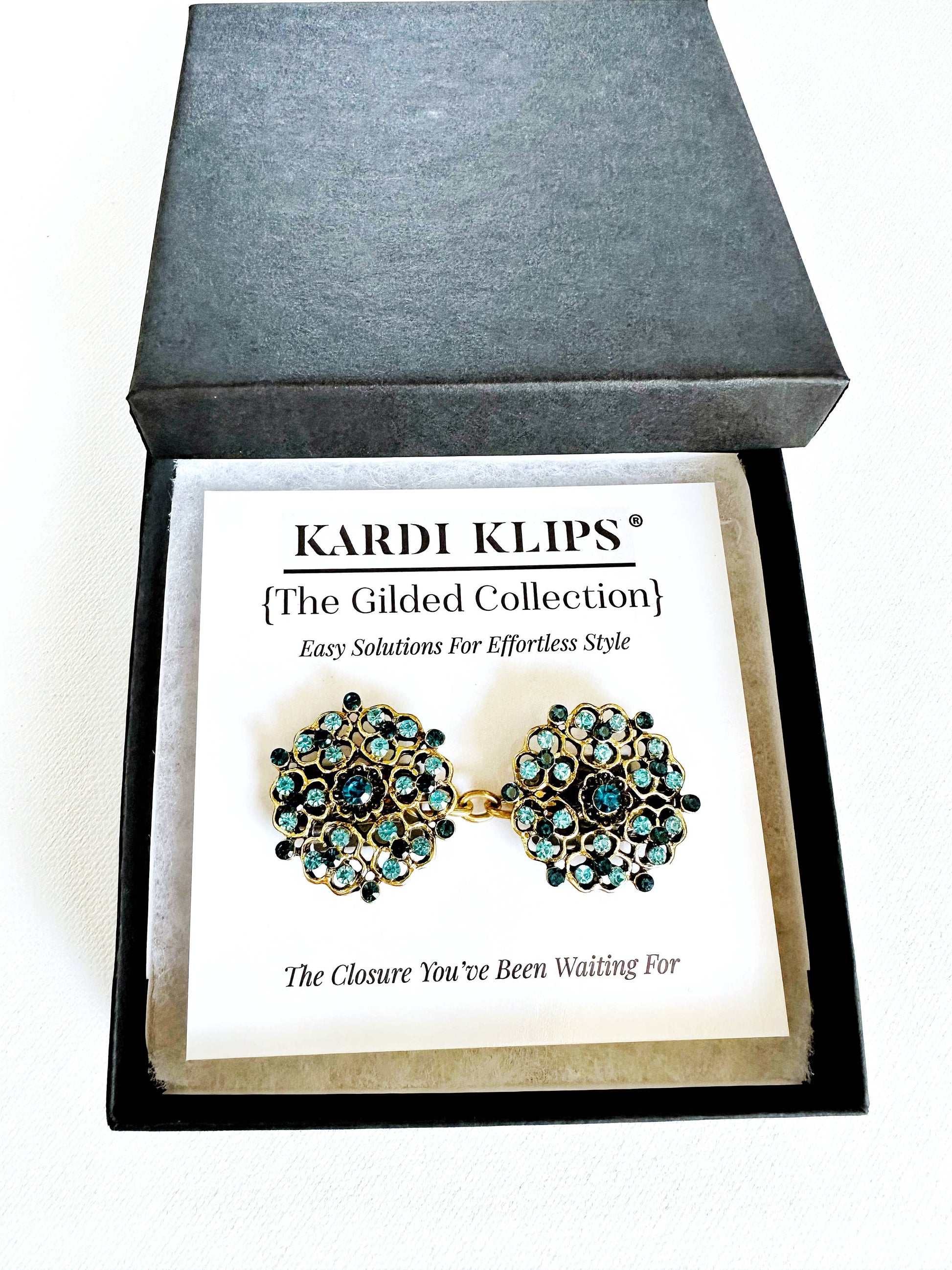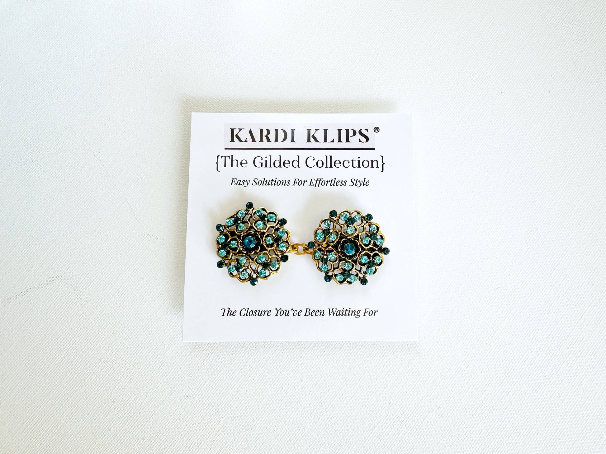 Blue & Gold Cinch Clip, Gilded Sweater Clasp KardiKlip