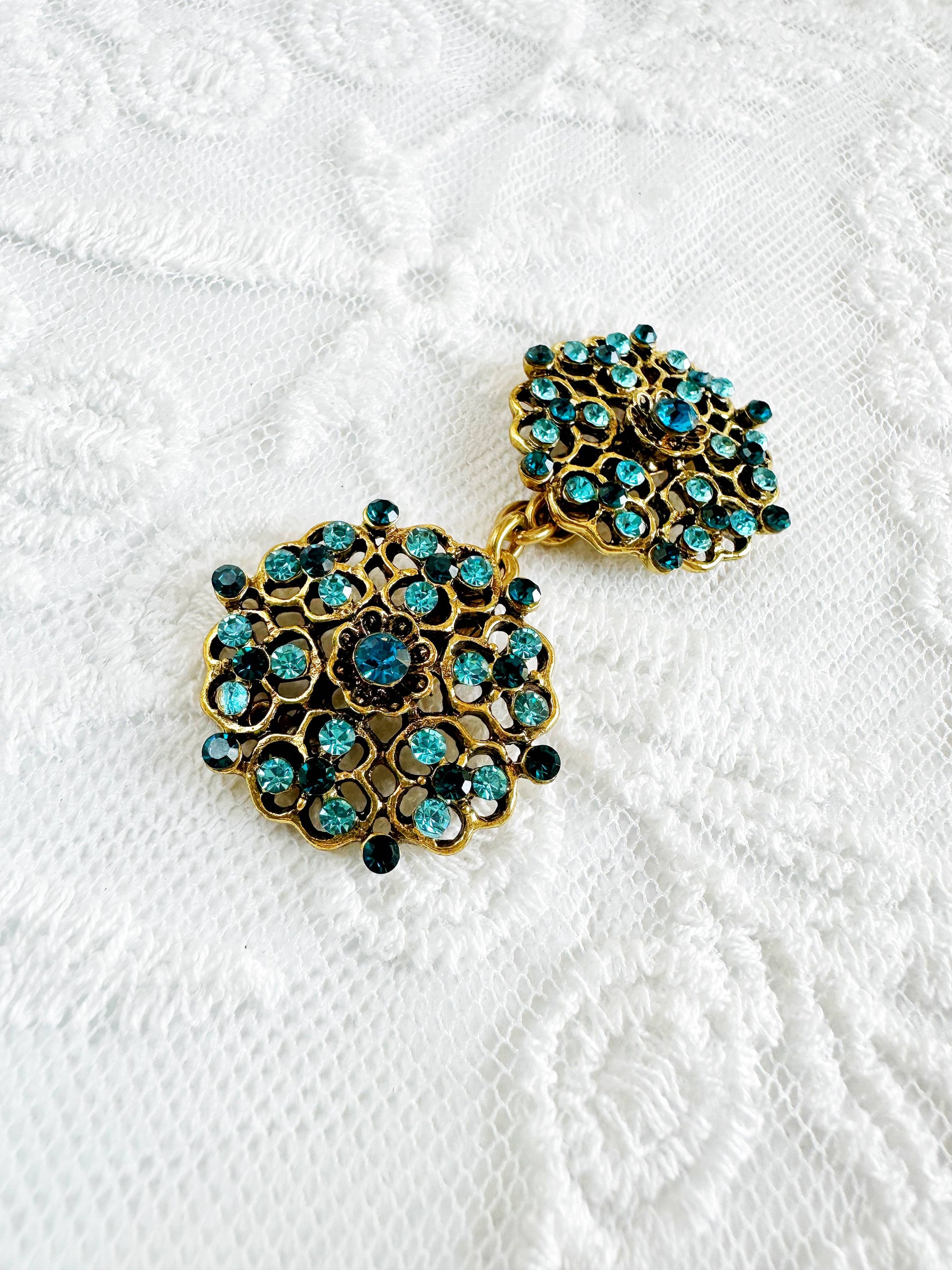 Gold-Bronze Flowers set with aqua & teal blue gemstones.