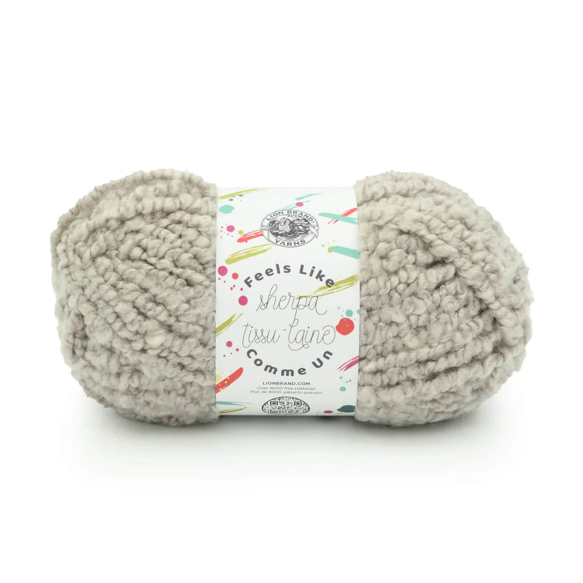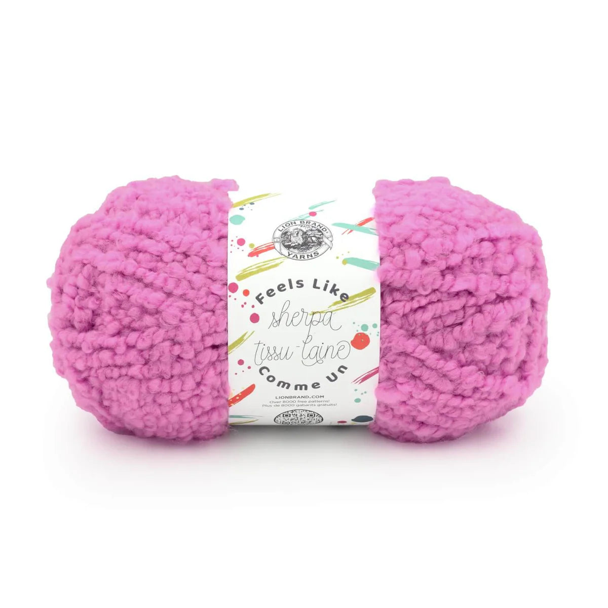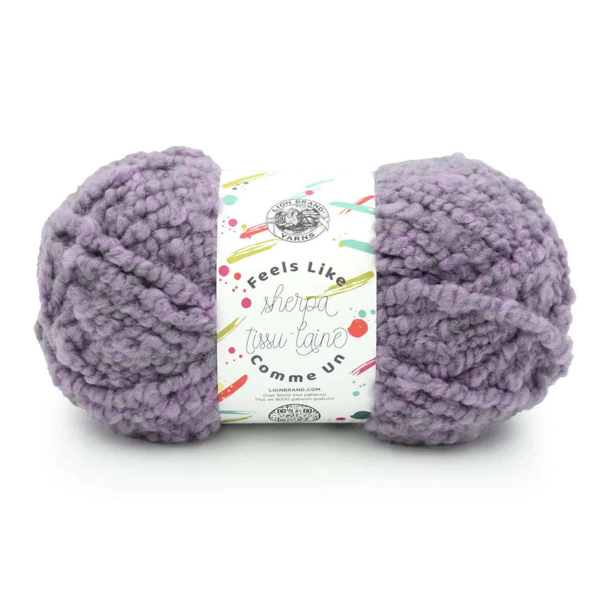 Bring the cozy texture of sherpa fleece to your next project with Feels Like Sherpa, a bulky-weight yarn made from a blend of acrylic and polyester. With 68 yards per skein, this yarn is ideal for plush knitted and crocheted blankets, fuzzy winter accessories, and warm outerwear. Its soft, fluffy fibers provide warmth without excess weight. Machine washable but should be laid flat to dry for best results.