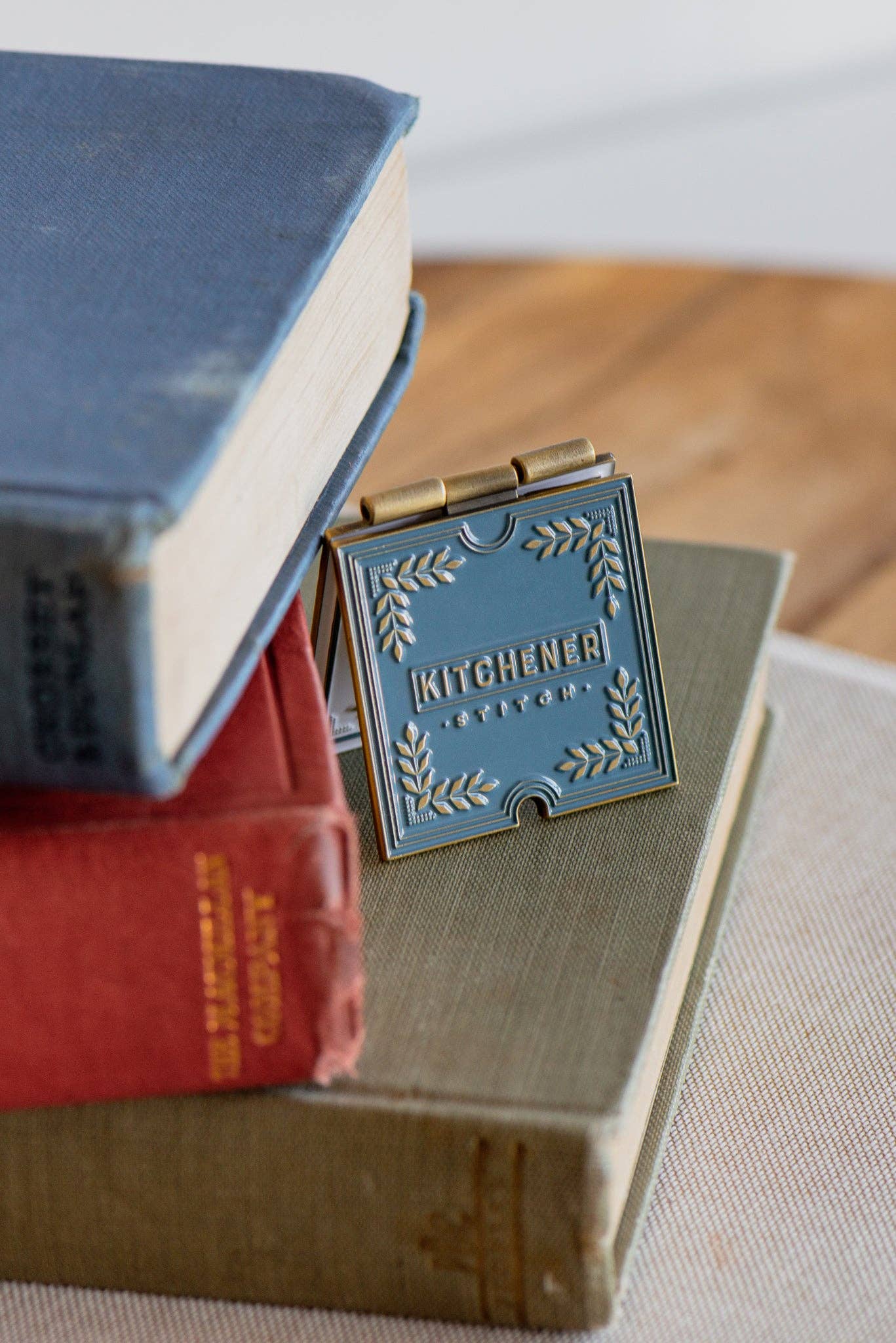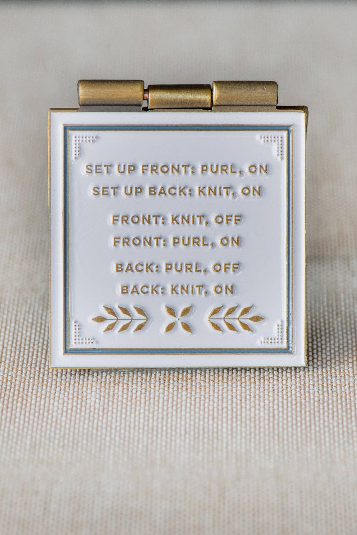 How many times have you seen Kitchener Stitch used in a pattern and thought, “Wait, how do I do that again?” We’ve all been there. Enter the Kitchener Stitch Pin, the newest member to Twig & Horn's K2TOG Club. This enamel pin features a unique hinged, two-layer design. Lift the cover to reveal easy step-by-step directions for the Kitchener Stitch engraved on the interior.