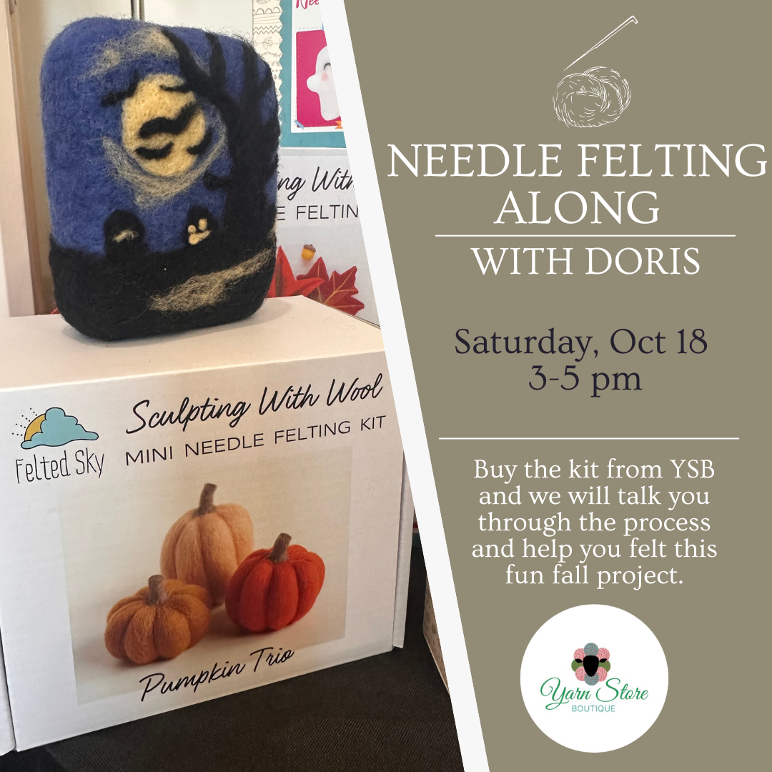 Doris is hosting a Needle Felting Along in the store. She is hooked on this newest craft at YSB. Everything is available in the kit, but if not, we will have what you need to use in the class. Pick your project below. The class is scheduled on October 18th @ 3:00 P.M. - 5:00 P.M. Come and have a stabbingly good time ;-) No class fee, just buy a kit from below.