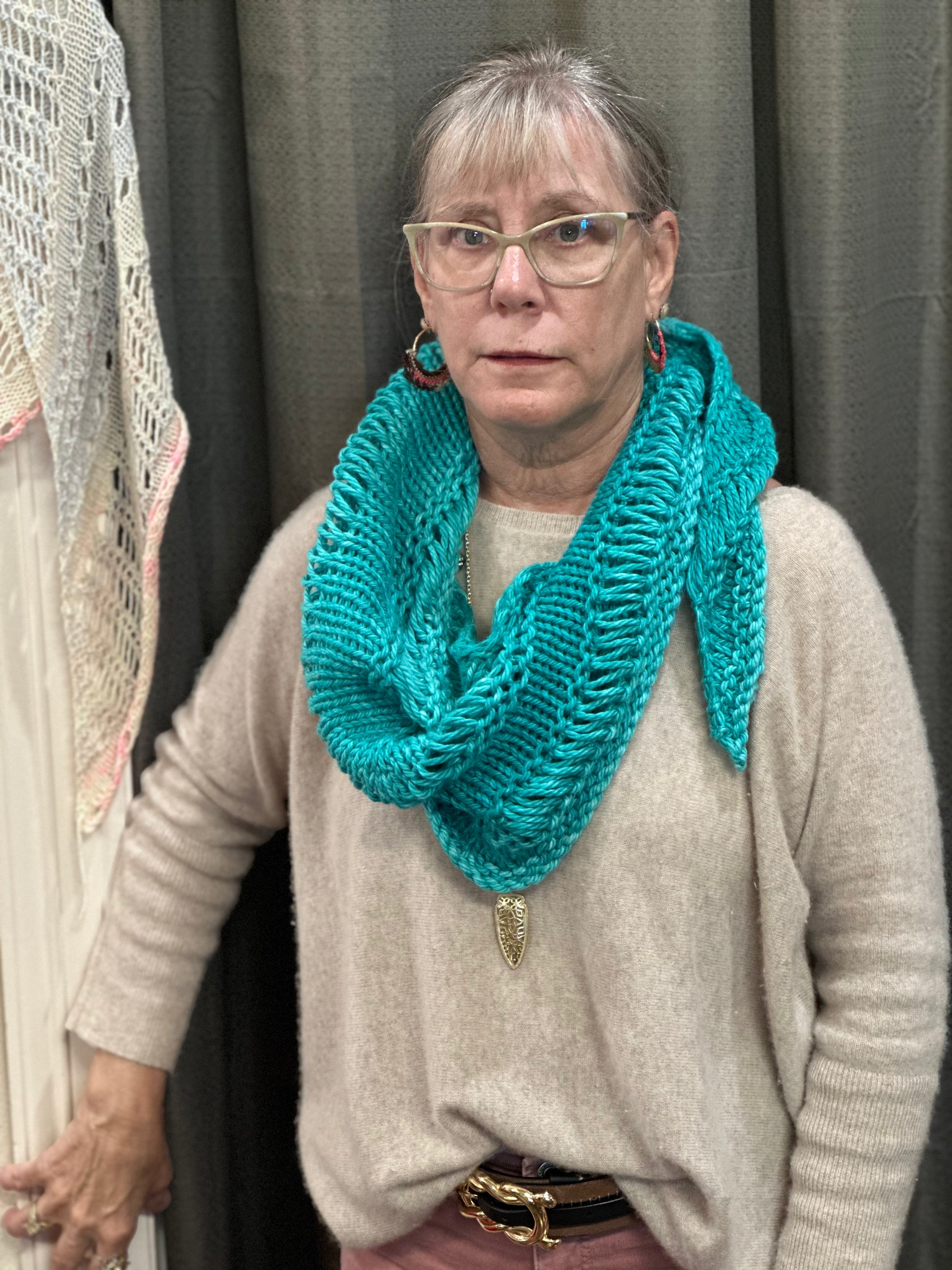 These are all handknitted with great yarn. Not damaged, great condition as they have been hanging on our wall. These are on sale as I no longer carry the yarn in which we made the samples. These are as is and no returns. The yarn value for these projects range from $25.00 - over $100.00. Great gifts for you or someone else.
