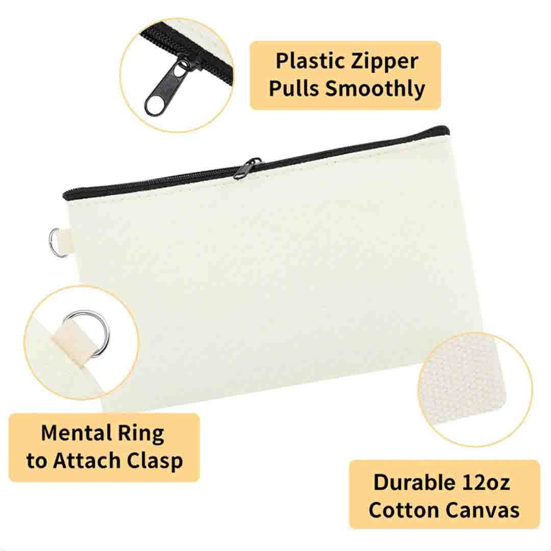 Elevate your crafting joy with this tote, where sustainability meets a good dose of crochet humor – because laughter is the best stitch in any project! Here's a cute little pouch. Perfect to collect any enough quantity of essentials in this handy little canvas pouch -- makeup, toiletries, art pens, candies, craft stuff, etc. Small enough to throw it in your purse but big enough to hold on any stuff you don't want to lose. They're so functional for both travel and everyday use. Size = Approx. 7-3/4” W x 4-1/2" H (19.7 x 11.5cm) Color = beige/off white with black vinyl art and letterings Made of 12oz cotton canvas and non-woven fabric inside Has a metal black zipper, a metal ring to attach any clasp and a cute little tassel (random color). .