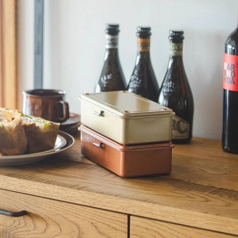 Pressed from a single piece of steel, this sleek storage box features a flat lid and seamless, edge-free construction. Its smart stacking design—thanks to negative/positive imprints—adds functional charm. Perfect for organizing everything from art supplies to tea or travel essentials.