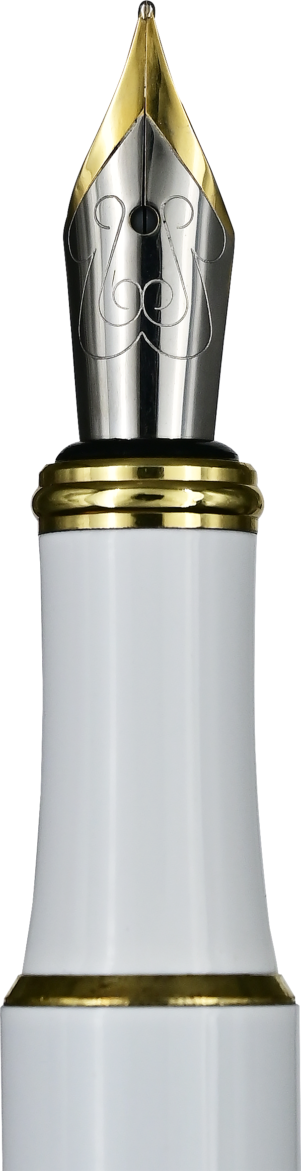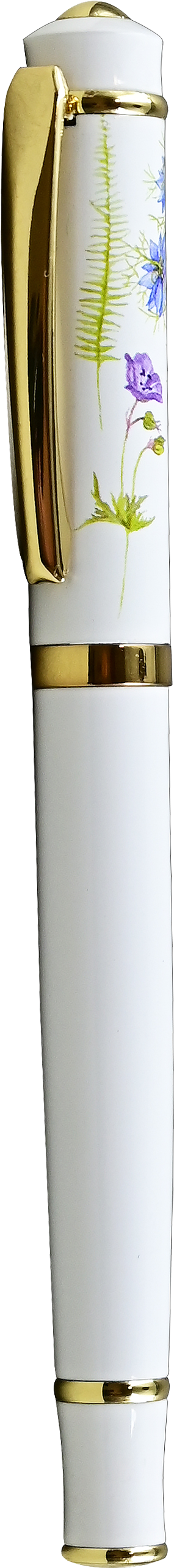 Elegant fountain pen glides over the page, providing a controlled fine line and true writing pleasure! • Solid brass construction. • Beautiful lacquer finish. • Black ink. • Fine line: 0.5 mm. • Universal cartridge and piston. Cartridge included. • Gold-plated iridium nib for smooth ink flow. • The pen cap design depicts softly hued butterflies, a dragonfly, ferns, and flowers, against a white background. • Gold clip and accents. • Packaged in a beautiful matching gift / presentation box. • Fountain pen makes attractive personal accessory for home or office!