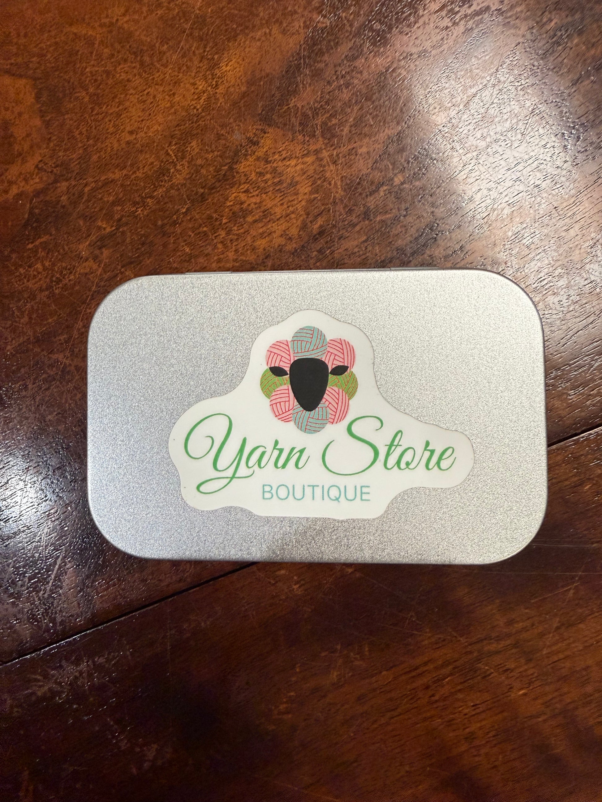 Perfect for your mini snips, darning needles, stitch markers. Very portable. Hinged Lid. Metal