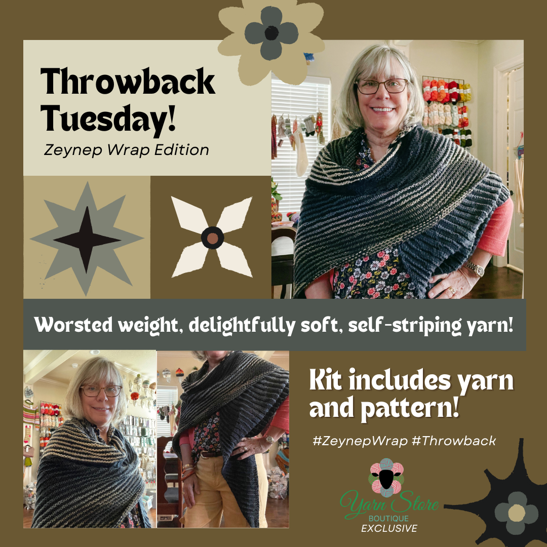 We did this shawl several years ago. This yarn is so soft and cuddly. Colors are beautiful. We are using Juniper Moon Cumulus with Cumulus Degrade or Cumulus Rainbow. You can machine wash, and tumble dry low and gentle till damp dry. This shawl will wrap you up - not too warm.